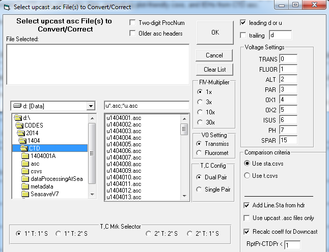 Step 2: File Selection - Navigate to the ASC folder and select all u*.ASC files. The d*.ASC files will be automatically processed concurrently. The leading d or u and trailing box are used to correctly parse the ASC file name to retrieve cruise and station numbers.