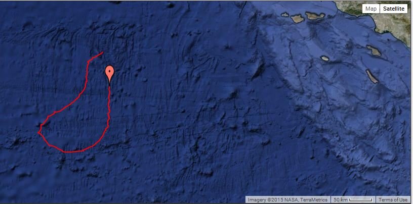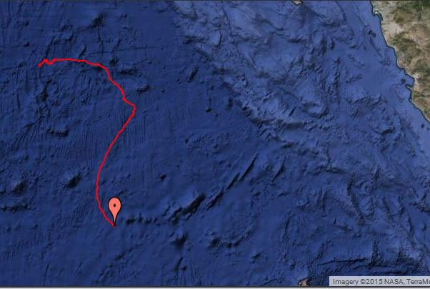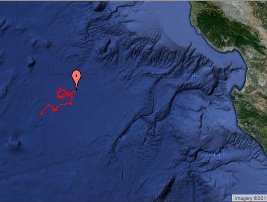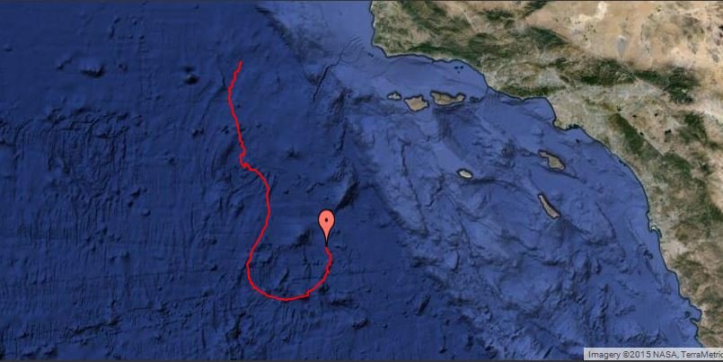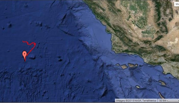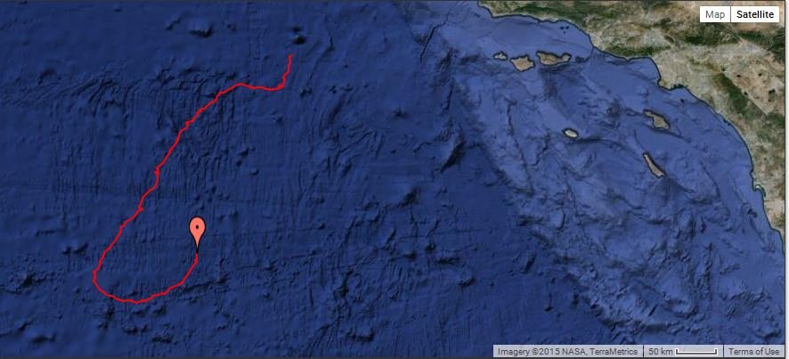 Drifter Track as of 1145 17Feb2015 PST. Go to http://gdp.ucsd.edu/calcofi for current position, SST & barometer data |