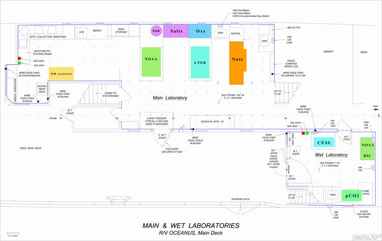 R/V Oceanus CalCOFI Deck & Lab Setup (click on any image for higher resolution): Please note these are tentative plans subject to change.